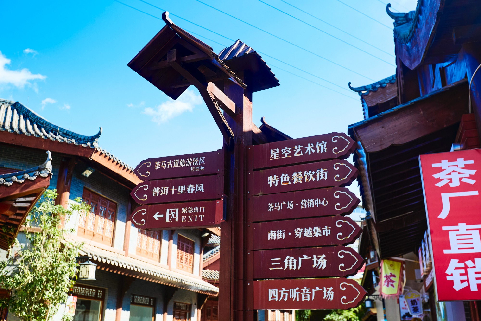 古朴的指示牌和周围环境完美融合,指明各种体验项目的方向,无论喜欢逛展馆还是户外运动,喜欢买买买还是吃吃吃,都可以在这里得到满足。