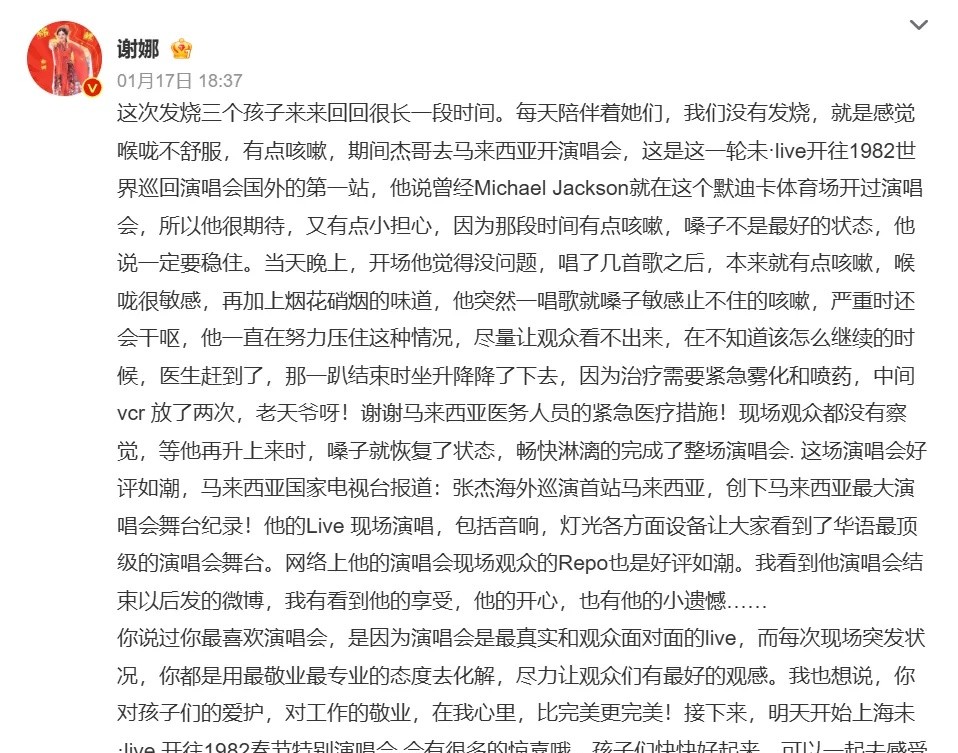 更让我感动的是,谢娜在文中对马来西亚医护人员的专业和效率表示了感谢。这不仅体现了谢娜的感恩之心,也凸显了国际合作的默契与高效。这意外事件,也让这场演唱会更添了一份传奇色彩,不是吗?