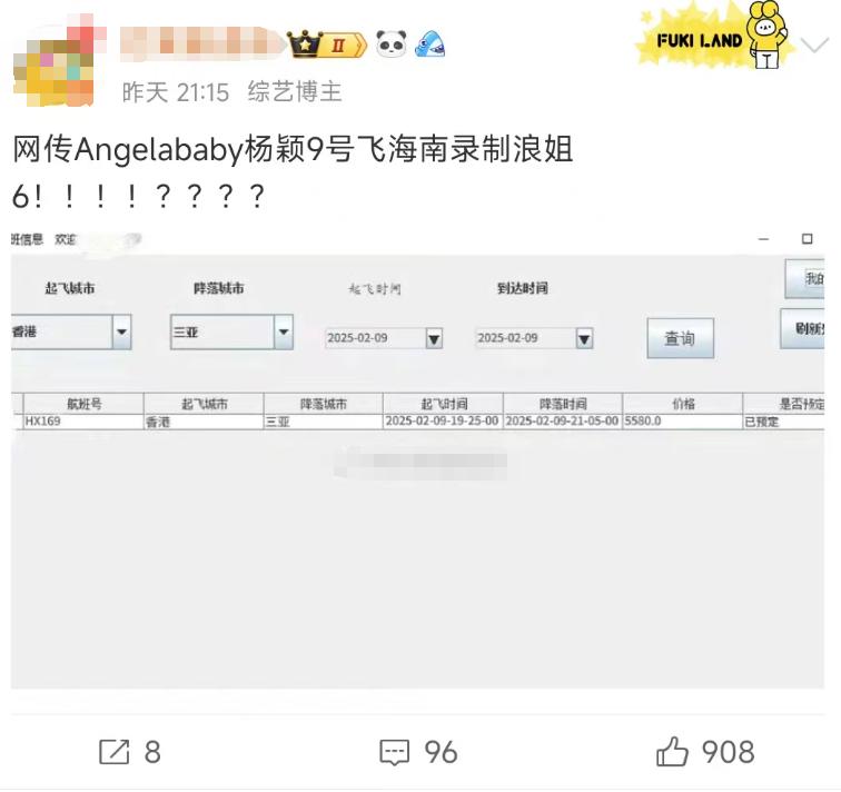 甚至还有知情人晒出了杨颖将要前去参加节目的相关航班信息。