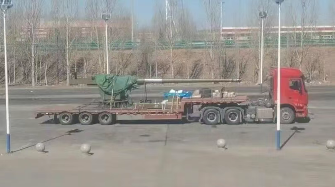 也被拍摄到用拖车运着在公路上跑,应该进行了陆上的打炮测试,取得了相关的弹道测试数据以后,就将其装载到某综合试验舰上。155舰炮从陆地到上舰,国营第447厂生产的样炮,其研制进度还是很快的。