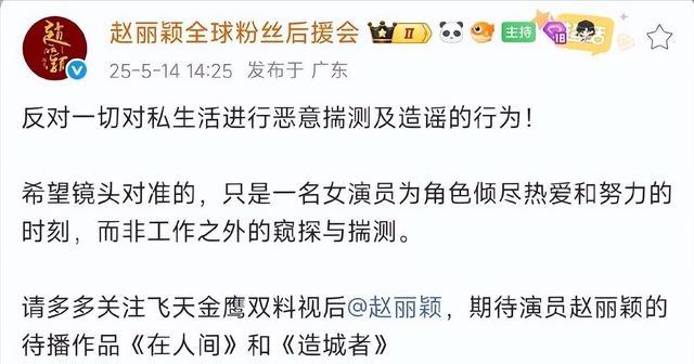 不过她的后援会却率先站出来发声了,声明拒绝对赵丽颖私生活任何的恶意揣测。