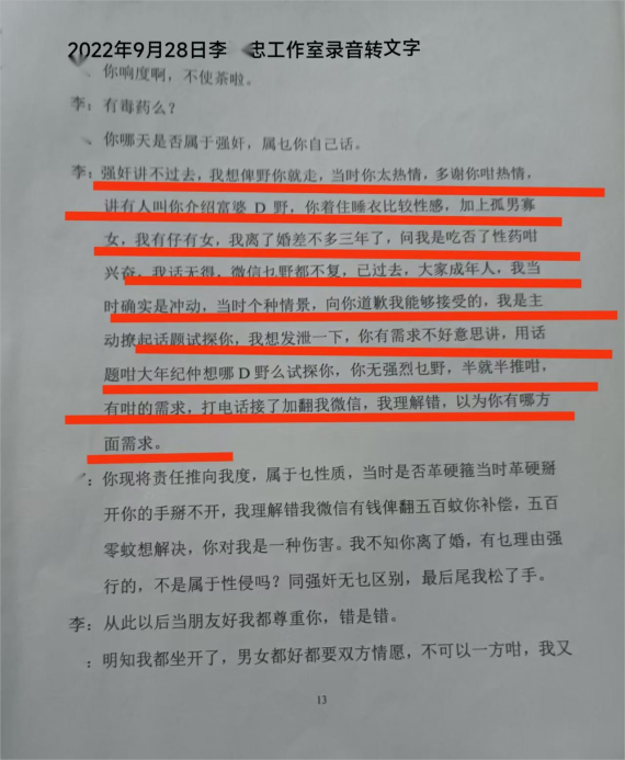 她把录音、聊天记录交给阳山人寿总经理,对方承诺10月30日给结果,最后却只说“属私生活,最多让李某忠道歉”。她去要报案回执被拒,还被民警指责“应及时报警,办业务不该让男性上门”,满心委屈无人倾听。