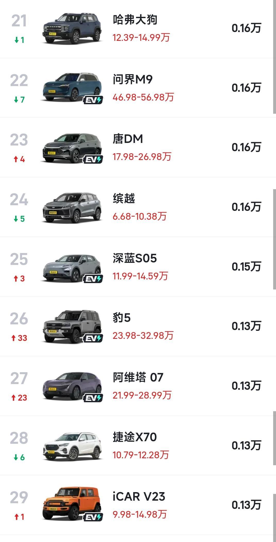国产SUV市场最近不太景气,这话题放在几年前恐怕没人信。曾几何时,自主品牌SUV凭借性价比优势攻城略地,哈弗H6更是长期霸榜,风光无限。然而,3月份首周的销量数据却像一盆冷水泼了下来:仅比亚迪宋Pro DM一款车型周销量突破5000辆,曾经的销量冠军哈弗H6排名跌至14位,周销量勉强超过2000辆。这到底是短暂的市场波动,还是国产SUV盛世危局的开端?值得我们深入探讨。