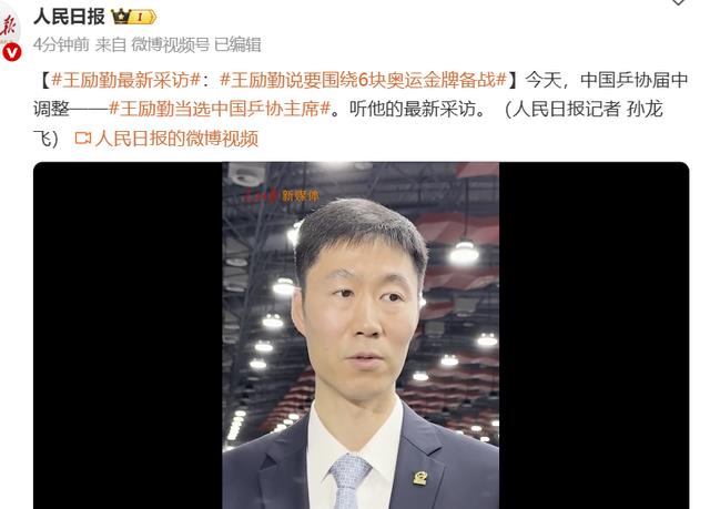 在采访中,王励勤表达了对洛杉矶周期的展望,他表示乒乓球项目的金牌从5块调整到了6块,他们也将制定相应的备战战略。