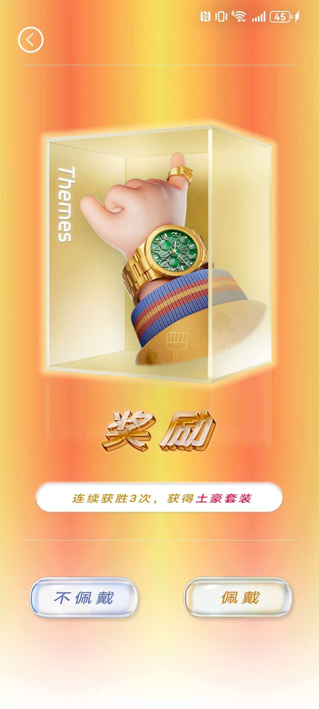 这个主题的核心玩法特别简单,锁屏上有个猜拳游戏。随手点“石头剪刀布”,连赢三次,就能随机拿到一套全新的装扮。不是直接送,也不是花钱买,而是要靠你“亲手”赢回来,那种感觉就像在游戏里抽到稀有皮肤,还挺上头的。
