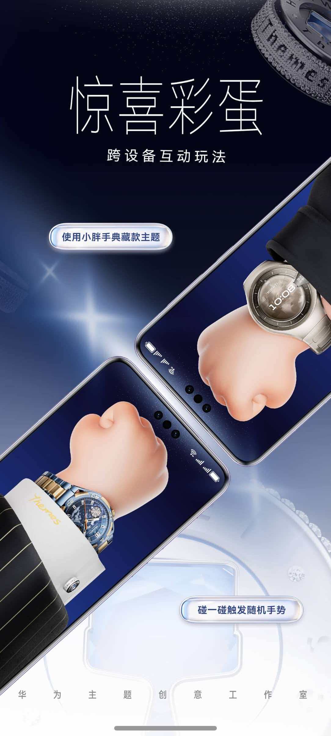 用华为折叠屏手机的话,还能解锁一个隐藏玩法,展开内屏时,你会看到一个“套娃”动画,大屏幕里的小胖手,自己也在用小胖手主题。动画效果做得非常顺滑,把折叠屏的大屏优势玩出了新花样。