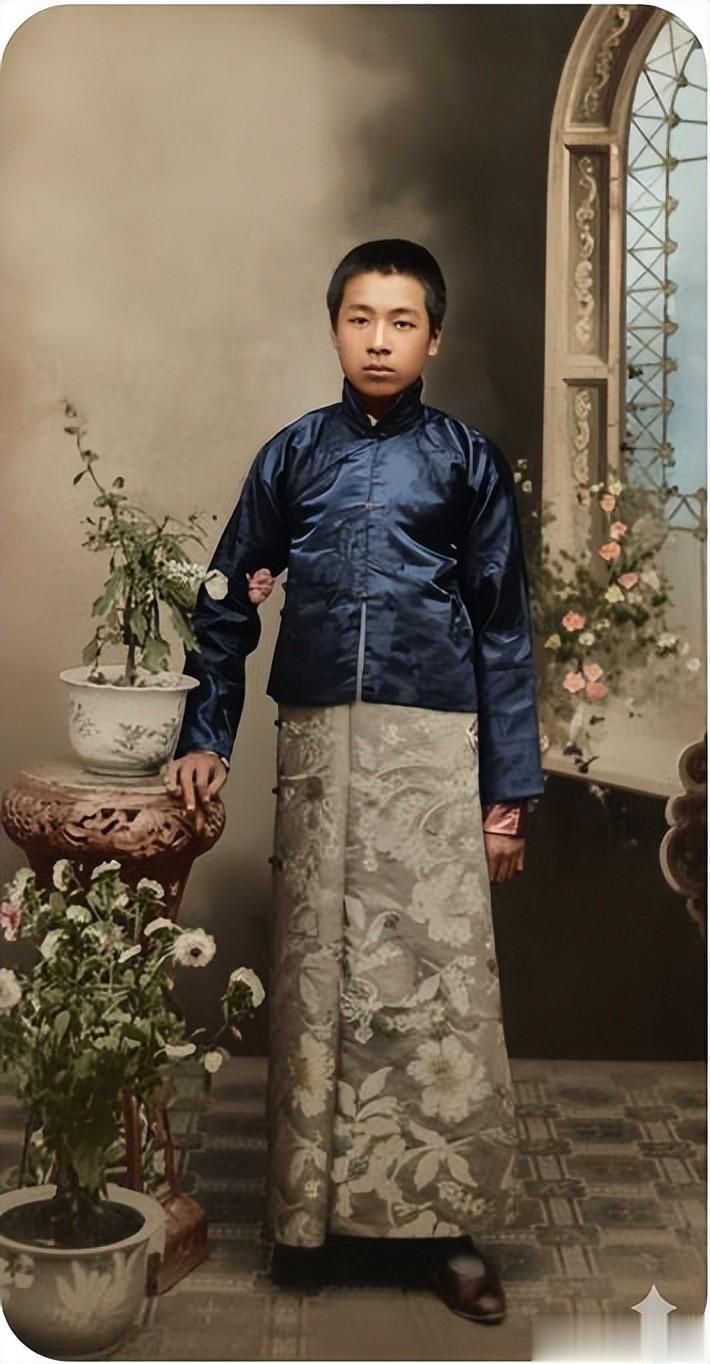 照相馆的布景是雕花几架上摆着盆栽花枝,右侧还有欧式风格的玻璃花窗装饰,显露出当时城市照相馆的流行审美。1910年,12岁的周恩来遵从伯父的安排,从淮安老家远赴东北奉天(今沈阳),进入铁岭银冈书院读书——这是他走出家乡、接触更广阔世界的起点,也正是在东北的求学经历,让他最早接触到进步思想,为后来的革命道路埋下了种子。
