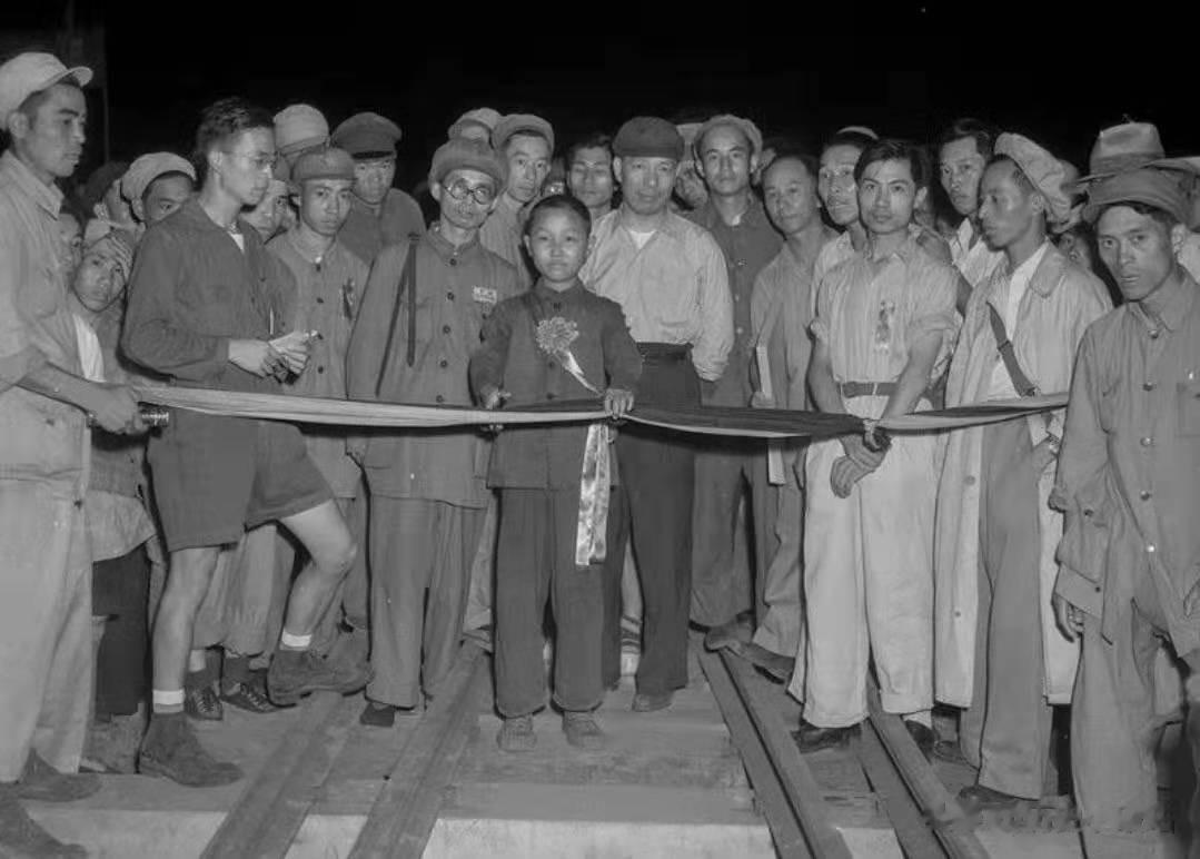 1949年8月1日,沪杭铁路的铁轨旁,二十多位铁路工人穿着工装,脸上带着连日赶工的疲态,却都目光齐整地望向铁轨间的台阶——那里站着个十来岁的孩子,胸前别着垂飘带的大红花,手里攥着剪彩用的布条,小小的身影衬着身后满是风霜的工人,格外醒目。