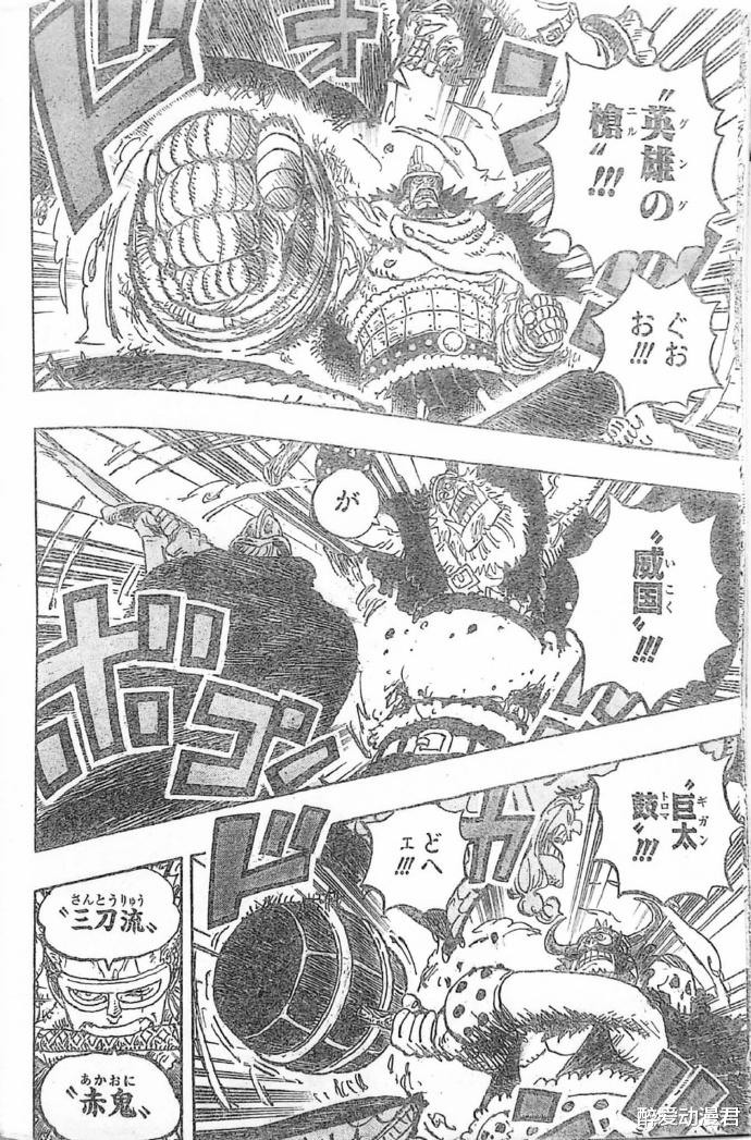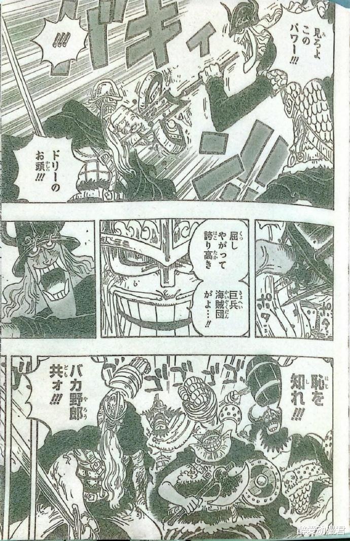 索隆的招数威三刀流·赤鬼·怒巨,直接秒了一个巨人,看来面对这样的恶魔巨人,对索隆来说并不算是什么难题,直接砍就是了!