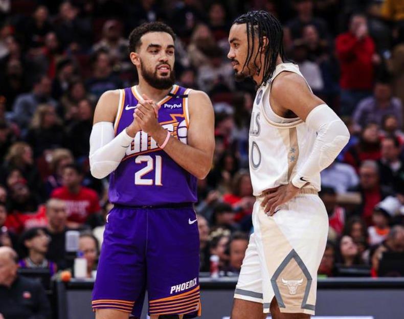 公牛队主场惜败太阳队,芝加哥公牛队在自己的主场迎战菲尼克斯太阳队。最终,在一场激烈的较量中,公牛队以117比121惜败于太阳队。尽管太阳队最近的表现不尽如人意,已经连续四场比赛失利,但他们仍然稳居西部第十一的位置。然而,这样的战绩让太阳队距离季后赛附加赛越来越远。目前,他们与西部第十名的萨克拉门托国王队之间还有1.5个胜场的差距。如果这种趋势持续下去,太阳队很可能将失去参加季后赛附加赛的机会。相比之下,公牛队虽然也经历了五连败的低谷,但由于费城76人队同样遭遇了一波六连败,公牛队依然保住了东部第十的位置。本场对决中,公牛队派出的首发阵容包括基迪、怀特、球哥、布泽利斯和武切维奇;而太阳队则派出了比尔、布克、奥尼尔、杜兰特和理查兹。