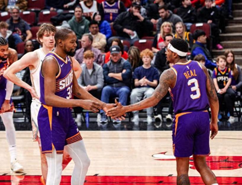 太阳三巨头复苏在这场比赛中,杜兰特展现了他的卓越实力,特别是在公牛队步步紧逼时,他总能挺身而出,为球队贡献关键得分。最终,他以27分、11个篮板和5次助攻的数据完美收官。相比之下,上一场比赛中的布克表现低迷,但在这场对决中,他终于找回了状态。布克全场20投10中,斩获29分、4个篮板和8次助攻。他的复苏无疑对太阳队的帮助极大,犹如久旱逢甘霖,让球队重拾信心。至于比尔,他在这场比赛中重新回到了首发阵容,并且表现得十分出色。尤其是在比赛的最后一刻,比尔的一记三分球帮助太阳队锁定了胜局。全场比赛结束后,比尔19投10中,得到25分、6个篮板和4次助攻,其+11的正负值更是成为太阳队中的最高。这无疑证明了比尔在关键时刻的决定性作用,就像夜空中最亮的星,照亮了整个赛场。