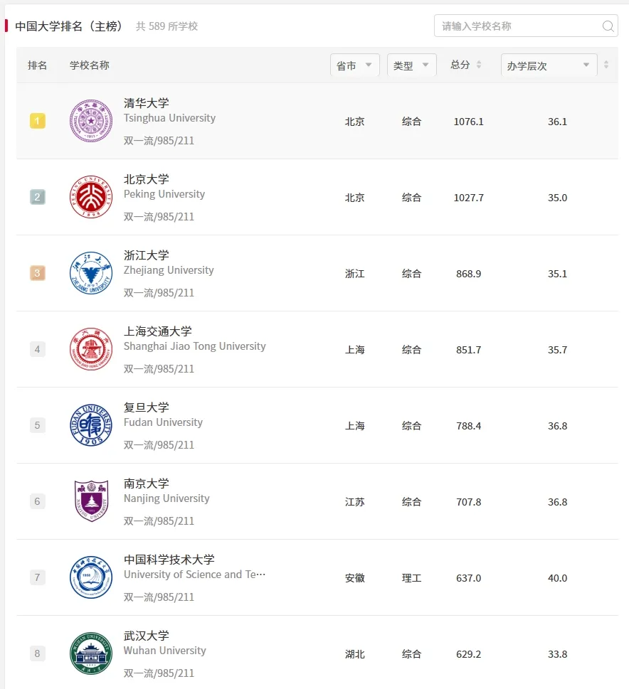 这个平台对国内大学、学科、专业进行了权威的测评,如果想了解各大高校实力,可以直接点击查看。