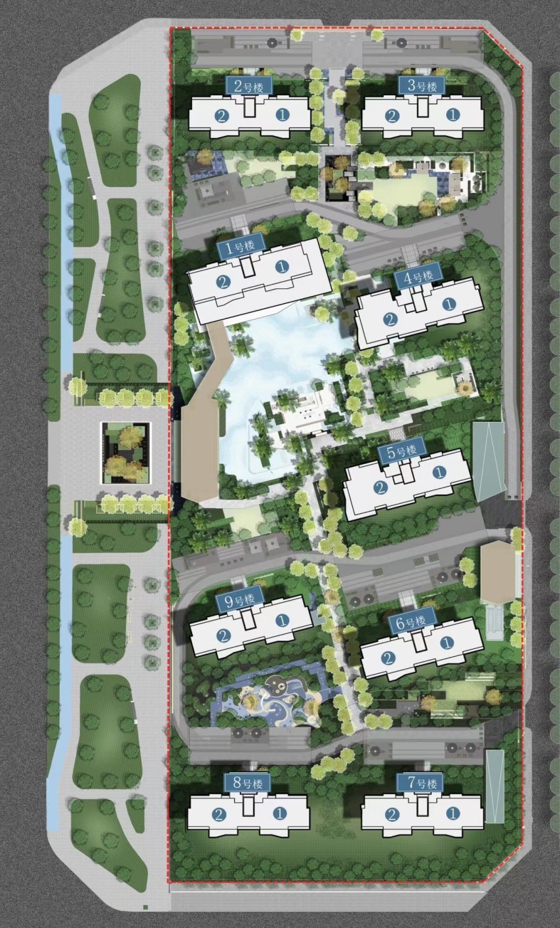 整个小区规划住宅9栋,有12F\16F\17F三种楼层高度,只有143㎡和187㎡两种面积段户型,首批次要推出的是1、4、5号楼。