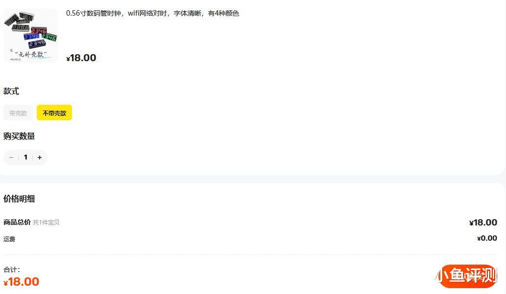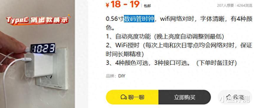 这种情况我真的忍了很久,后来在二手鱼里瞎逛,发现了个神奇的小玩意儿。0.56寸的数码管时钟,带WiFi自动对时的,你们猜多少钱?18块,带壳的19块,还包邮。一包烟钱都不到,就能解决我上面说的所有痛点。