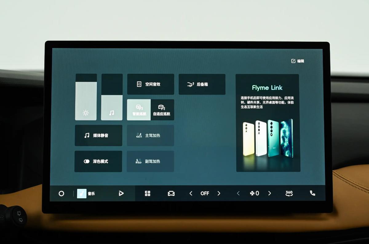 进入车内之后,全新一代豪越L还是不出意料的和老款车型保持高度一致,虽说这套中控台造型没什么大问题,横向线条为主且层次感分明,再有较多实体按键和中控悬浮式大屏,科技感与实用性兼得,但就是让人感觉有些对不起全新一代这个称号。不过官方表示这次升级主打一个内在,比如说Flyme Auto车机系统的应用,会让界面布局、操作流畅度以及手机互联兼容性方面均有提升。