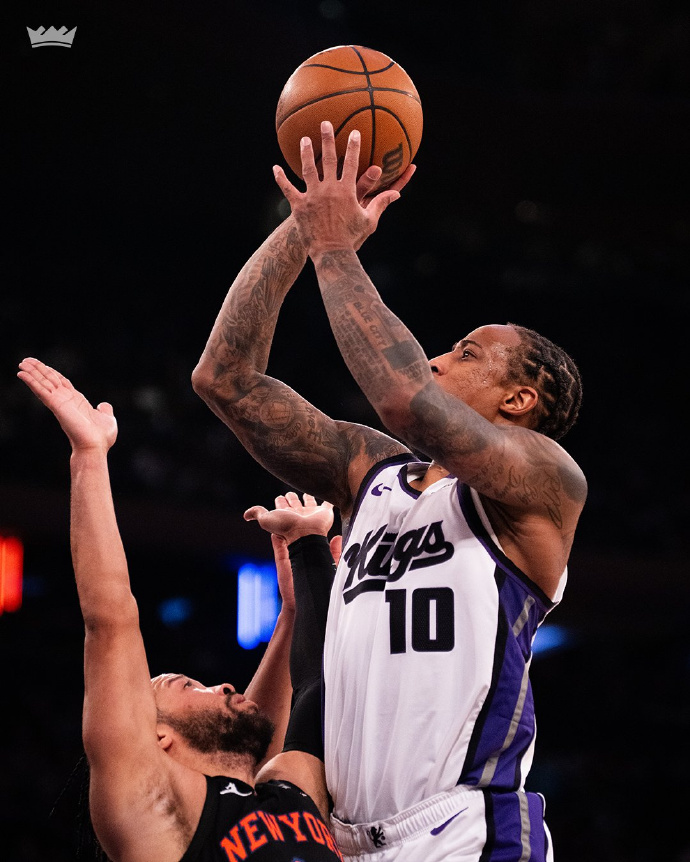 国王这边,全队仅3人得分上双。德罗赞十分给力,打了39分钟,26投13中,三分7中1,罚球8中7,空砍34分5篮板,正负值-17。萨博尼斯中规中矩,出战33分钟,10投5中,三分2中0,罚球2中1,拿到11分12篮板7助攻的全面数据,也有3次失误,正负值-17。