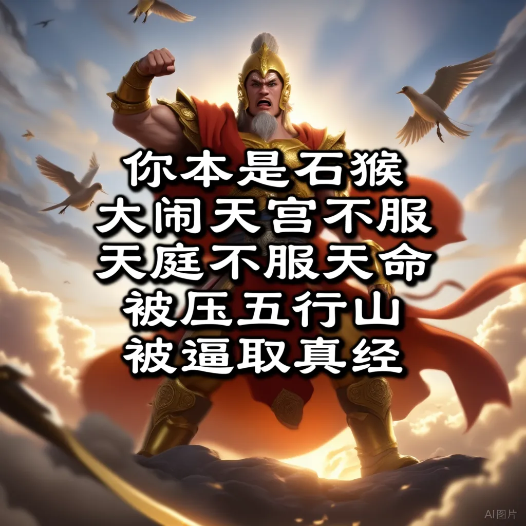 忽然,水帘洞中跃出一道身影,金甲金冠,手持金箍棒,火眼金睛,怒目圆睁——竟是另一个孙悟空!