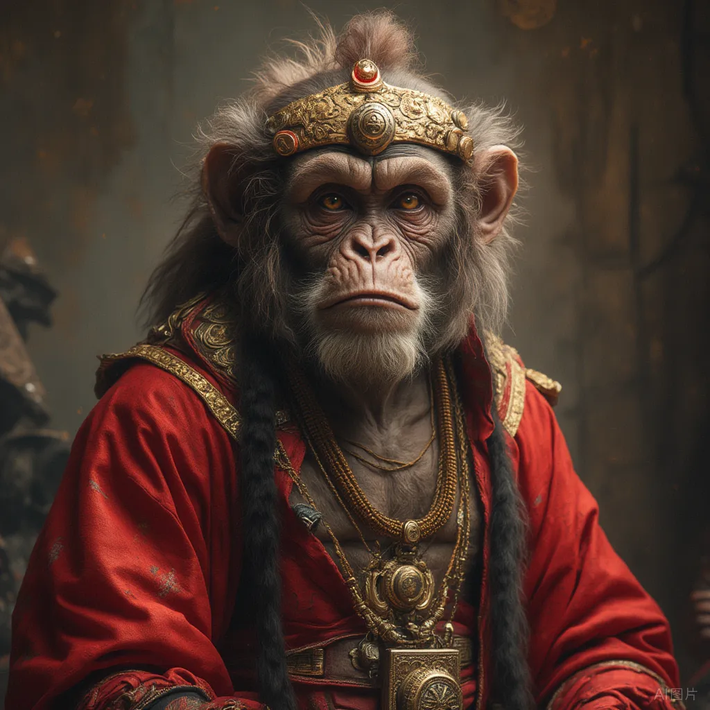 他依旧是那副毛脸雷公嘴,身披锁子黄金甲,头戴凤翅紫金冠,只是少了几分桀骜,多了几分温和。每日里,与群猴嬉戏山间,食仙果,饮山泉,教小猴们识字、习武、守山、护林,不再是那个动辄打杀的齐天大圣,而是山中最慈祥的猴王。