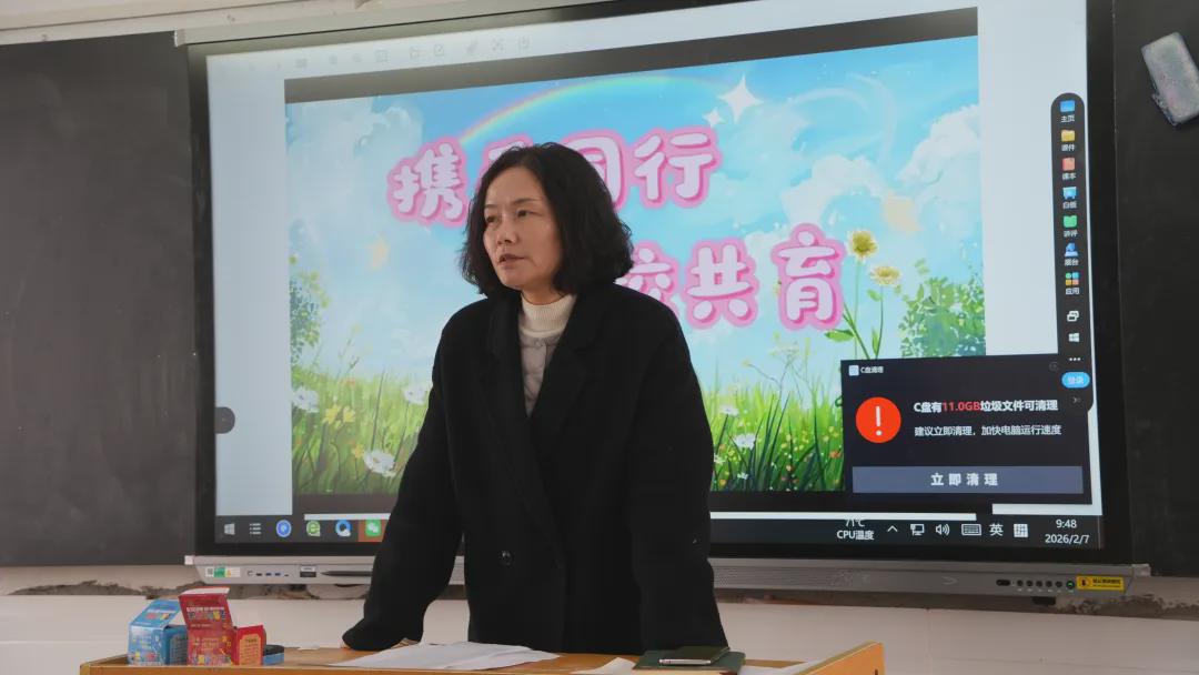 针对即将实施的《全民阅读促进条例》,李校长向全体家长发出倡议,呼吁家校携手同行,将书香融入日常生活,让阅读真正成为孩子们生命的底色,助力孩子们在文字中汲取力量、滋养心灵。谈及即将到来的寒假,李校长着重提醒家长们,要切实关注孩子的安全与健康,引导孩子保持规律作息,在坚持体育锻炼、持续阅读积累、参与家务劳动、感受传统年俗的过程中,度过一个有温度、有收获、有成长的假期。校长真挚的话语、殷切的嘱托与诚挚的新年祝福,温暖了每一位在场家长的心。