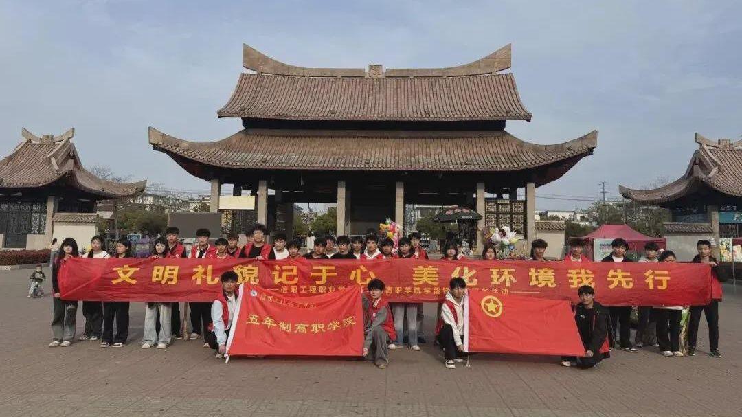 为深入开展3月文明礼貌月主题教育活动,大力弘扬雷锋精神,引导青年学子践行社会责任,3月26日,信阳工程职业学院五年制高职学院团总支,组织团员及入团积极分子前往县秀水公园开展学雷锋志愿服务活动。