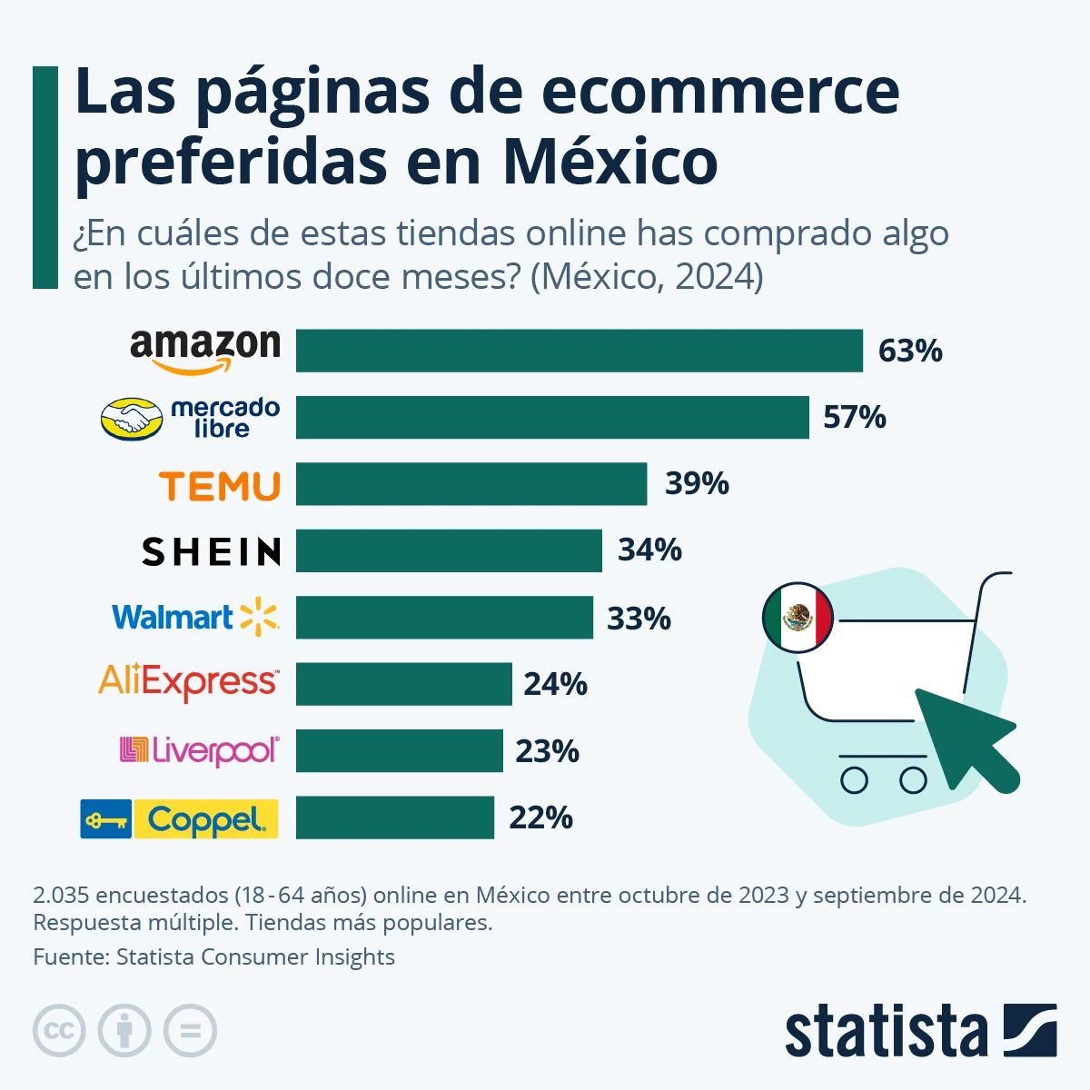 拉美不断增长的电商格局以拉美地区跨境电商配套最为完善的地区墨西哥为例,本土电商平台美客多、全球电商平台亚马逊外,也不乏看到SHEIN、TEMU也纷纷上榜抢占拉美市场(墨西哥);