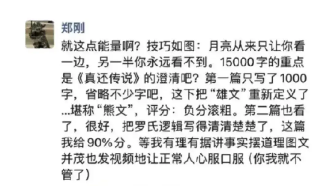 对于罗永浩今日的“雄文”,投资人郑刚也在朋友圈称,“月亮从来只让你看一边,另一半你永远看不到”。