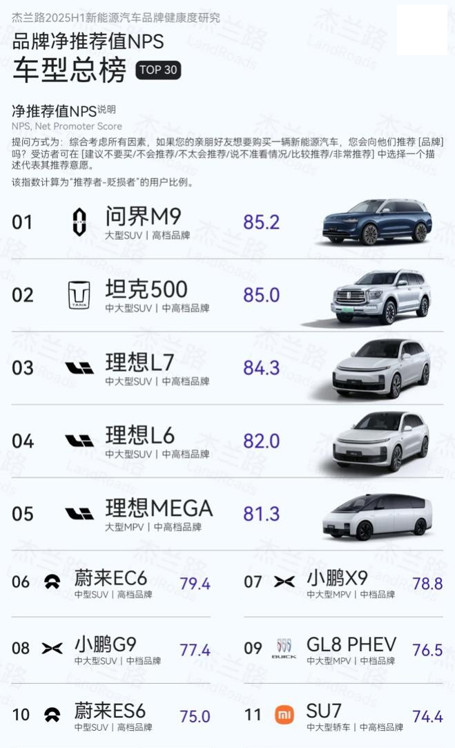 技术实力最终需要市场的检验,而鸿蒙智行在这方面的表现堪称典范。根据第三方研究机构的数据,问界品牌在2025年上半年新能源汽车品牌健康度研究中位居发展信心指数榜首,其旗舰车型问界M9更是以85.2分的成绩夺得新能源车型净推荐值第一名。
