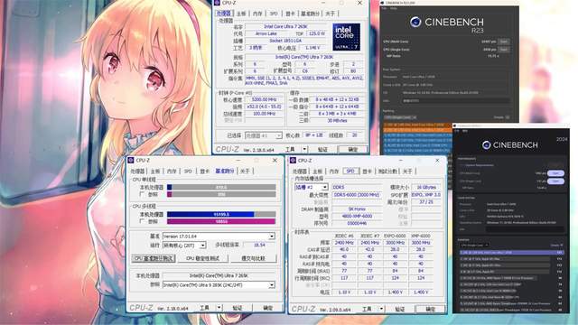 另外,本次装机我们还实测了CINEBENCH R23 以及R24以及CPU-Z软件,性能不错,实测CPU-Z单线程跑分819,多线程15199,Cinebench R23 多核跑分甚至可以做到32407!不得不说目前的英特尔Ultra7 265K处理器配合技嘉电竞雕B860M AORUS PRO WIFI7主板来满足咱的中度办公和游戏需求,绝对是妥妥的够用了。
