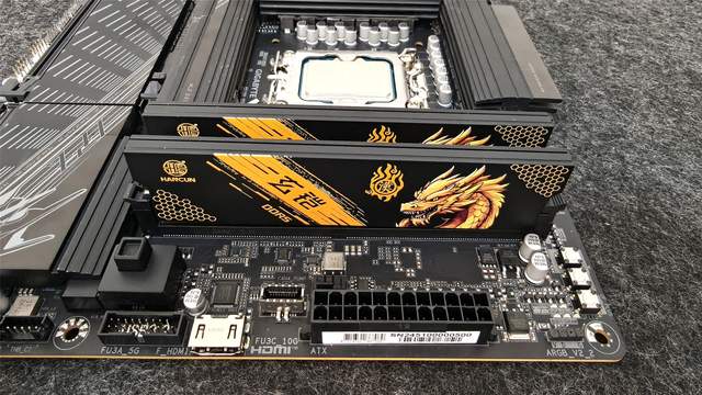 我们本次装机选择的内存是来自汉存的玄铠6000 C28系列内存,特挑海力士A-die颗粒素质在线,全新分层架构设计的2mm铝合金散热马甲,PCB板的两侧都贴有高密度3M散热胶垫,实际超频无忧。