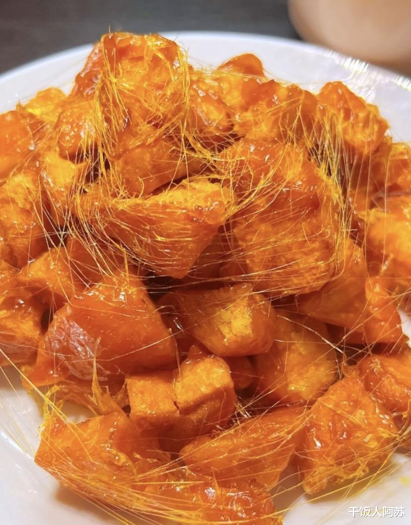 这道经典的东北甜菜,外皮裹着琥珀色的糖衣,内里是软糯流心的红薯,夹起一块,糖丝拉得老长,甜蜜感瞬间溢满心头,是大人小孩都无法抗拒的幸福感。