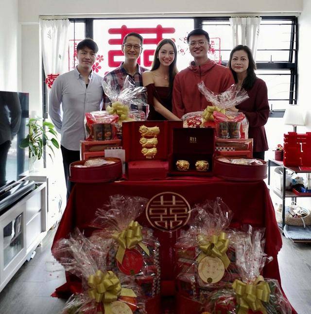 从社交媒体上的照片可以看到,杨咏彤和另一半都刻意挑选了红色的衣服,显得相当喜庆。