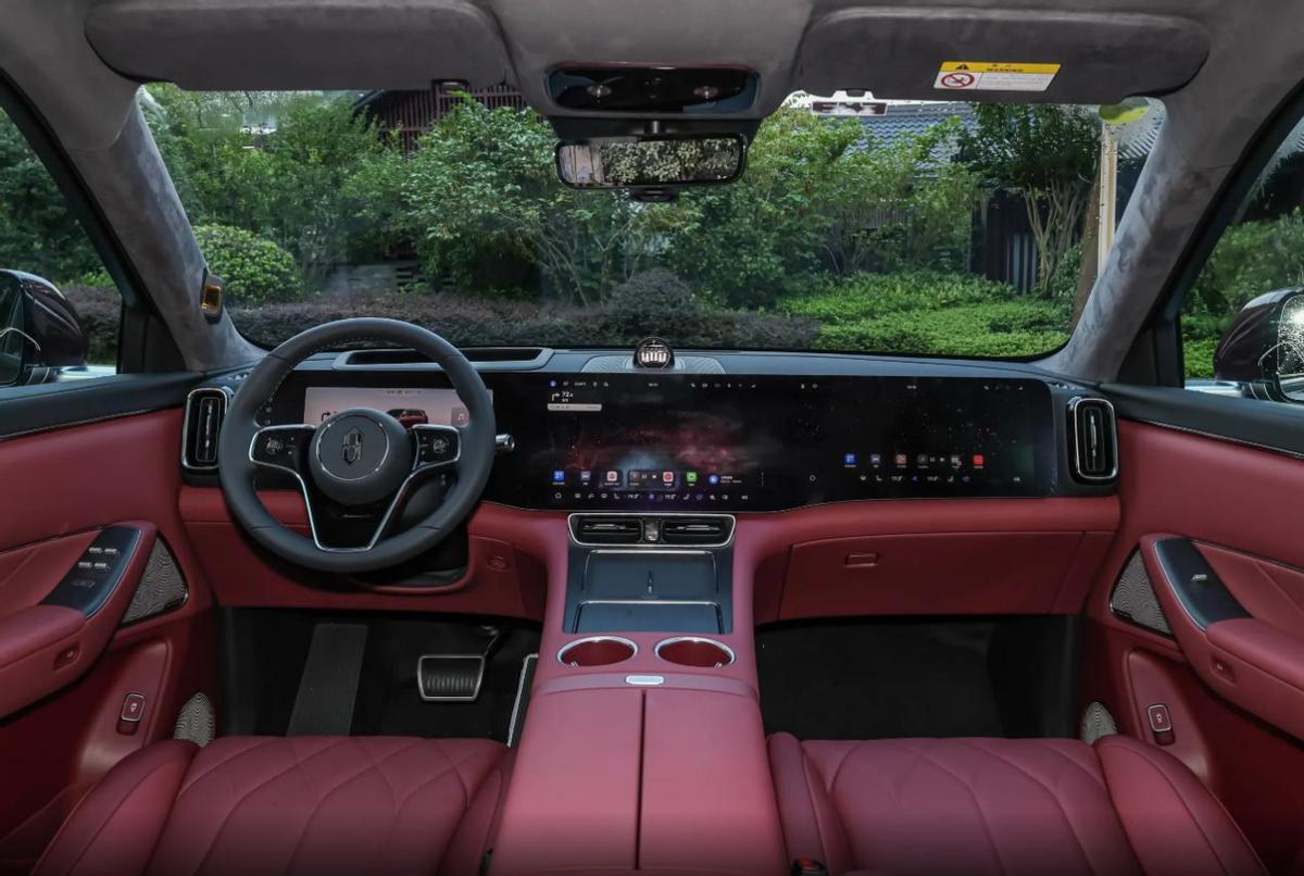 内饰方面,比较吸引人的就是那块天际屏,在搭配16.1英寸的中控屏,营造的科技感强。该车同样是采用怀挡式换挡机构,扶手区域配置了手机无线充电面板和水杯架。