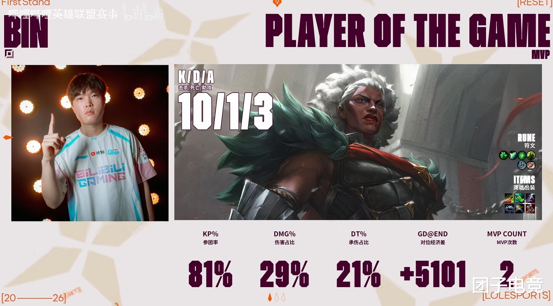 同时丹尼也搞懂了Bin哥的说明书,三场比赛都是去给Bin哥抢强势英雄,从而打对位碾压。