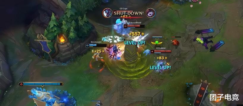一直到了游戏中期,G2打和BLG打完了小龙团战,那个时候G2其实是赚了的,可是就是在跟Bin哥面前晃悠,然后Bin哥狼母开打入场一打三将其逐个击破。
