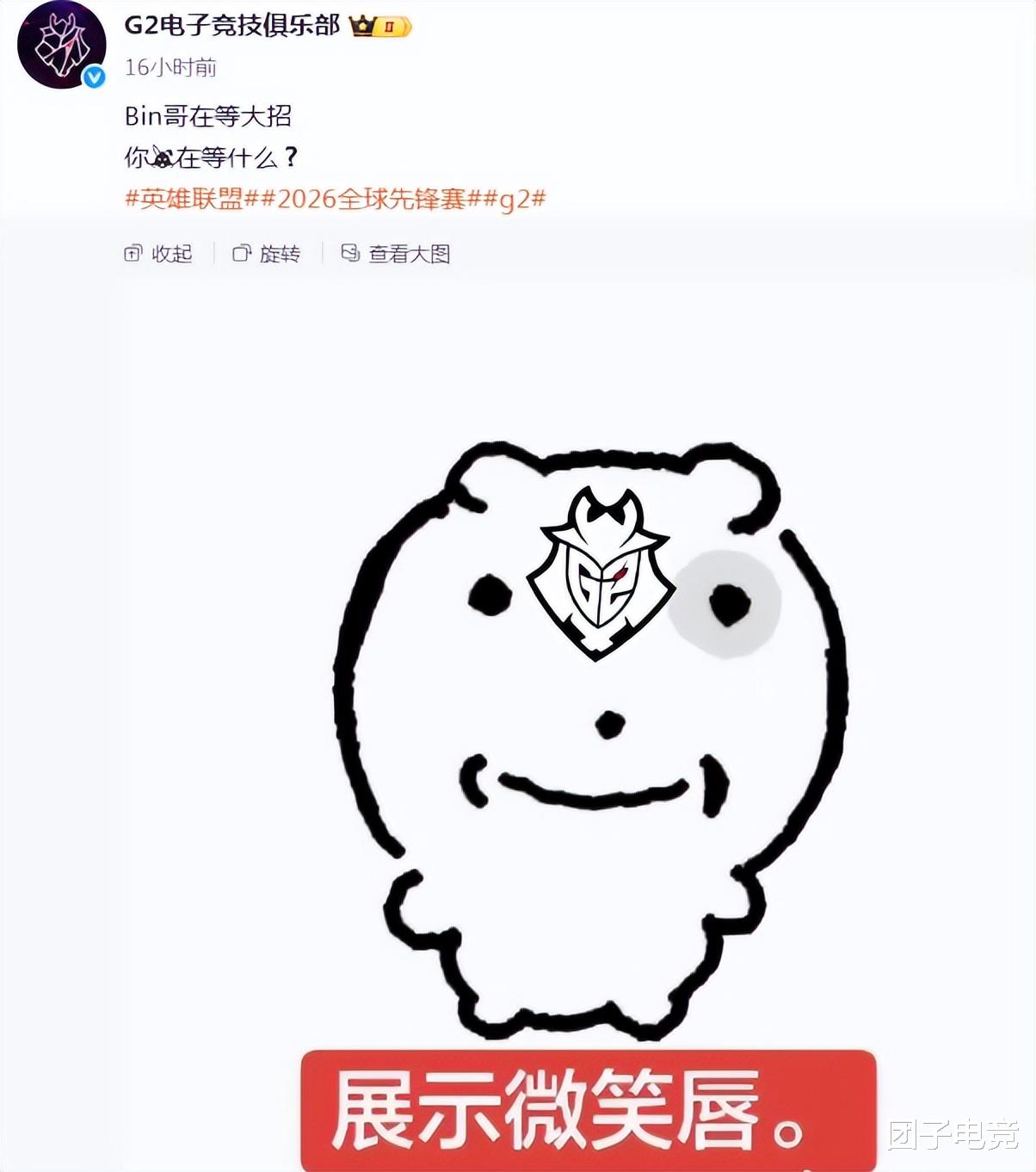 届时G2会整活儿的官博也是发出了哀嚎,直言:Bin哥在等大招,你们在等什么?