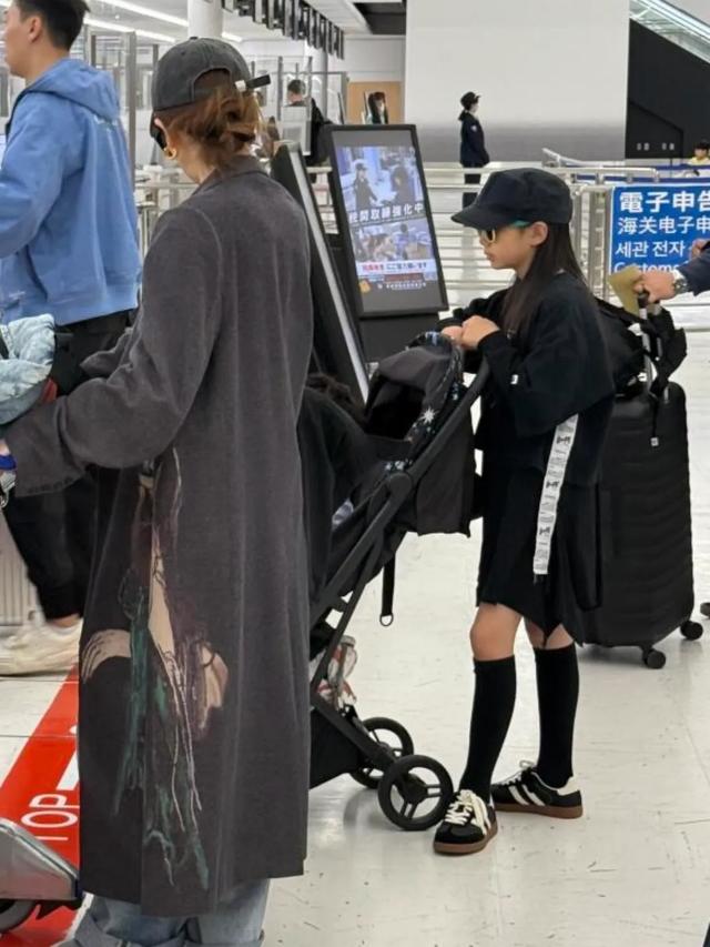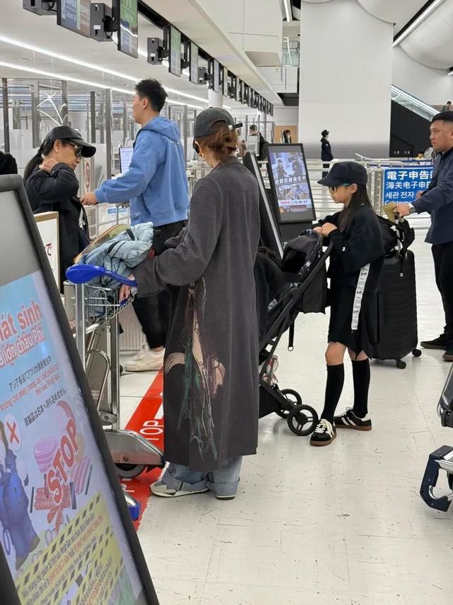 5月1日,有网友在社交平台晒出在日本机场偶遇戚薇李承铉一家。