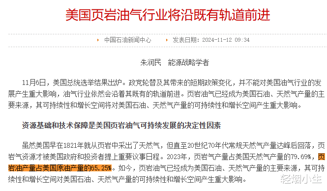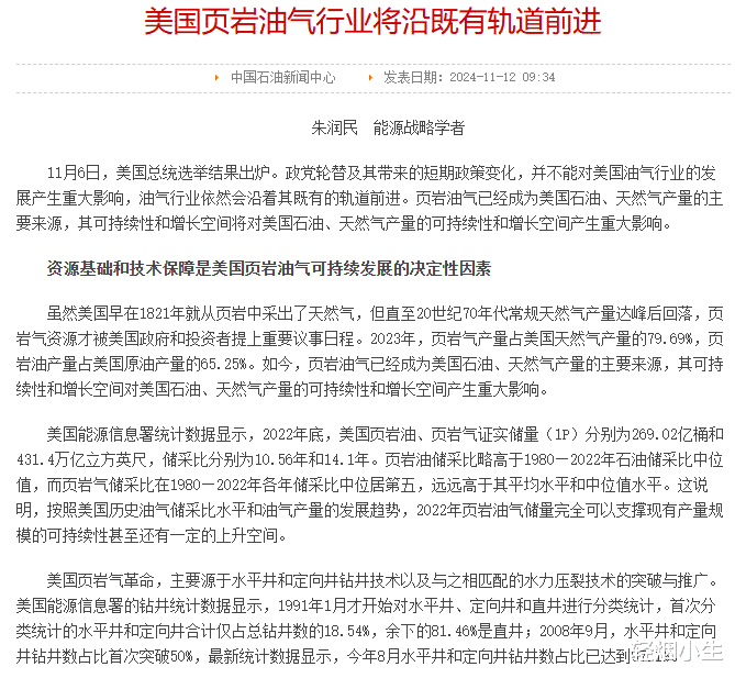 信息来源:中国石油新闻中心 2024-11-12 美国页岩油气行业将沿既有轨道前进