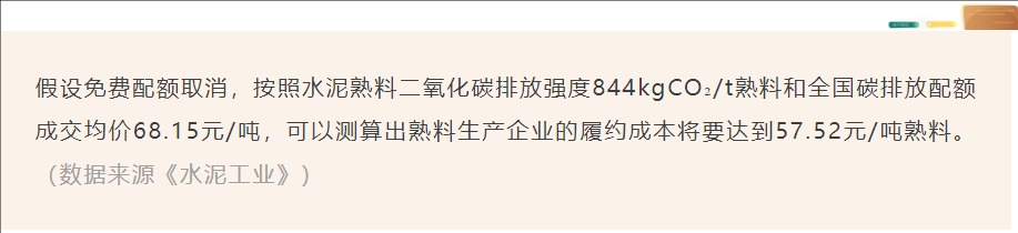 水泥行业纳入全国碳市场后,预计碳配额发放前期还是以免费为主,后期免费碳配额将逐年递减甚至可能取消,并且碳价逐步攀升,水泥企业的履约成本会随之增加。