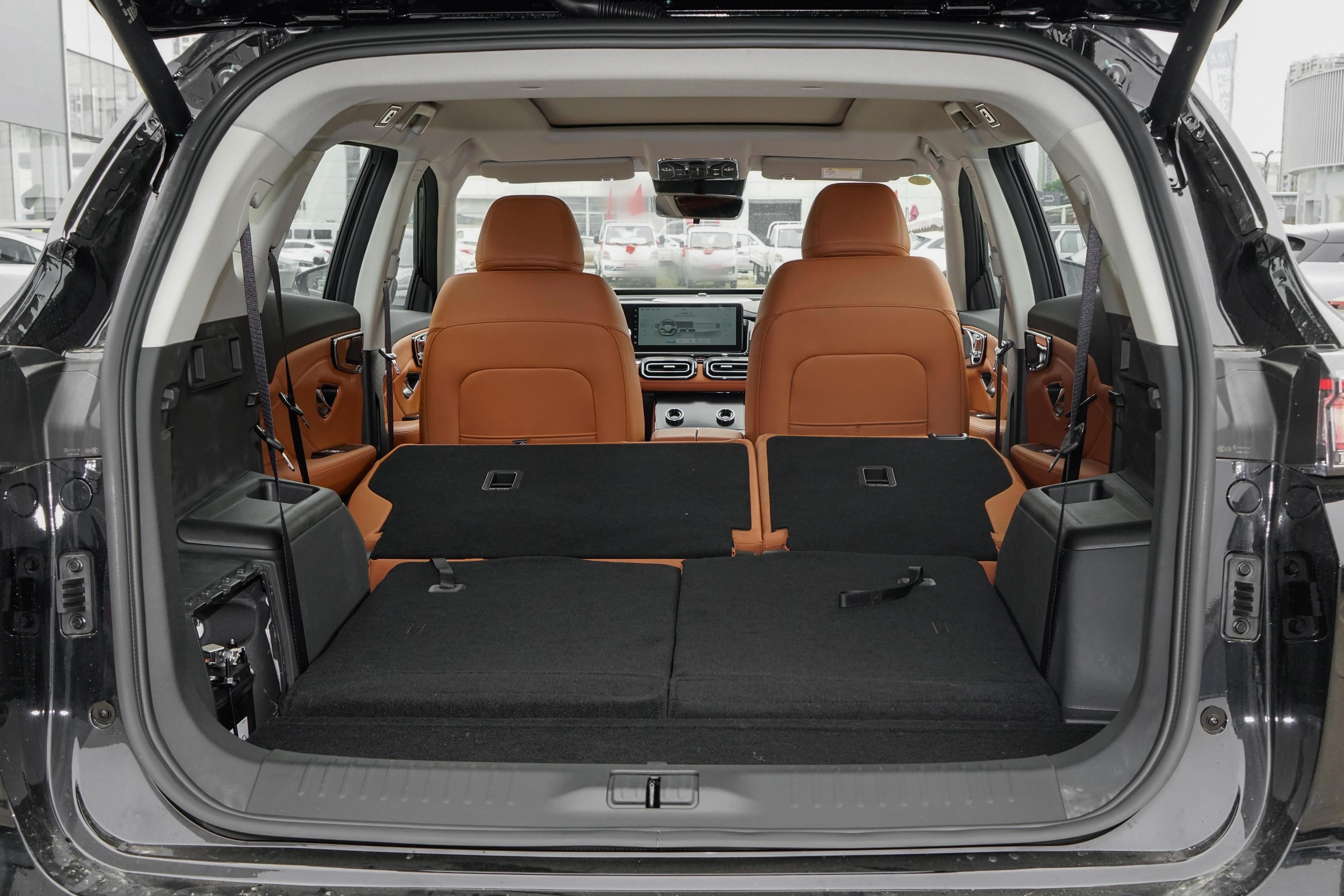 安全性能方面,车身采用笼式结构,高强度钢占比86%,其中21%为热成型钢,最高强度1500MPa,整车扭转刚度25000N·m/deg。一体式热成型双门环、四门防撞钢板及二三排座椅靠背内置高强度钢板,有效提升碰撞防护与追尾穿刺抵抗能力。电池为“守护者安全电池”,通过IP68防水认证(可在1米水深浸泡48小时),具备20吨抗压结构与1300兆帕专属底盘防护钢板,支持毫秒级碰撞断电保护。