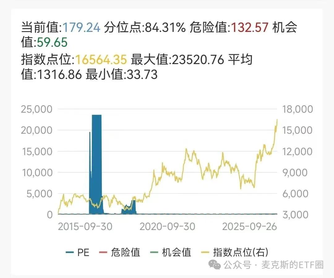 在科创50指数中,半导体芯片占比较高,所以科创50指数的市盈率也高达187倍。