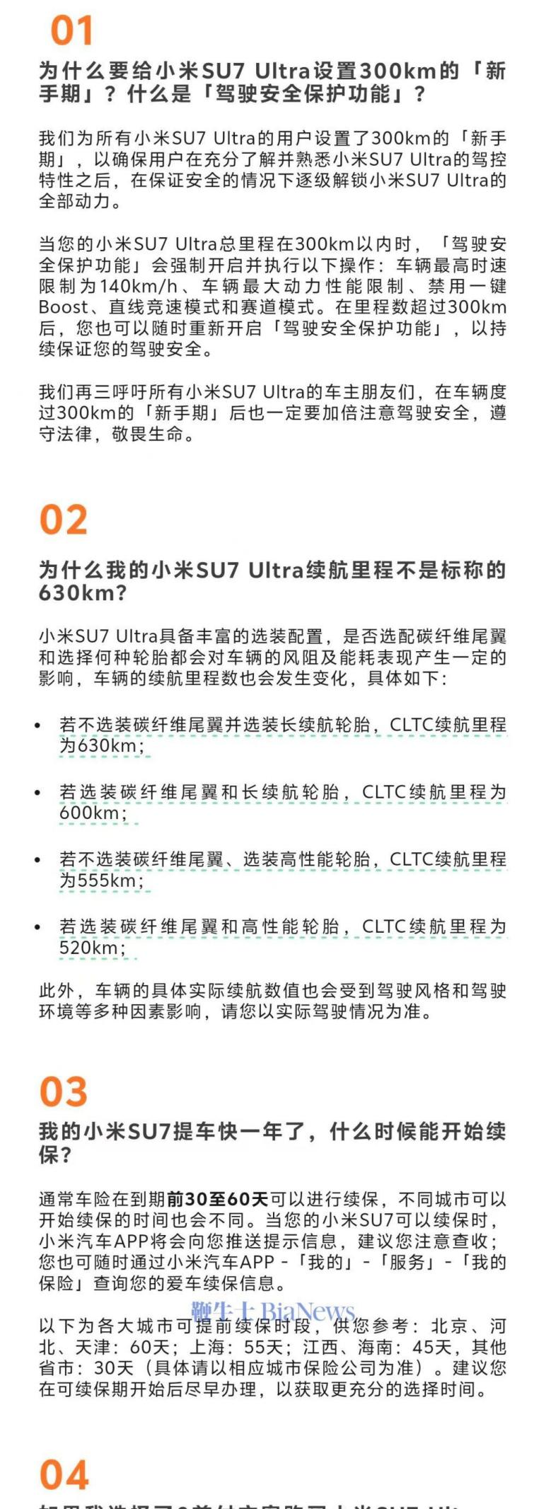 回到小米SU7 Ultra的“新手期”,它并非是对性能的妥协,而是对安全的承诺。300公里,不仅是用户熟悉车辆的过程,更是小米传递安全驾驶理念的窗口。这小小的300公里,承载着小米对用户安全驾驶的责任,也体现了其对汽车行业未来发展方向的思考。