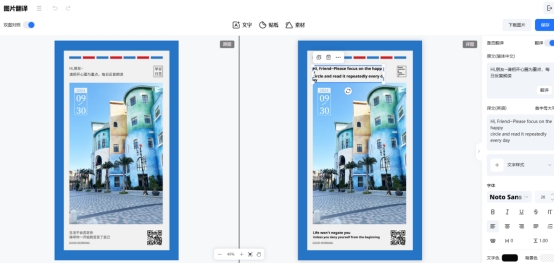 最后,单击【立即翻译】按钮,系统会对原图进行翻译及替换,并保持图片原有的字体、颜色和排版布局。