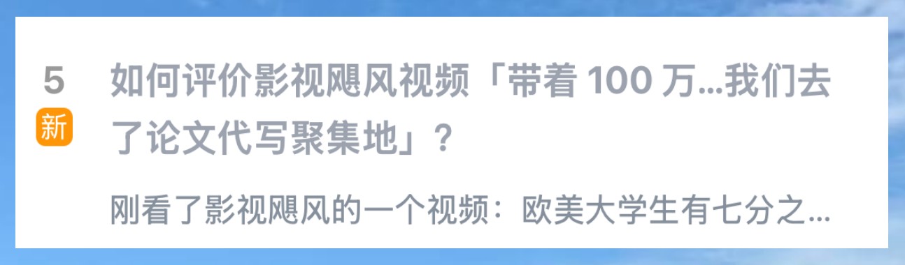 12月28日,知乎上一个关于影视飓风的问题炸了锅:“如何评价影视飓风视频‘带着100万…我们去了论文代写聚集地’?”