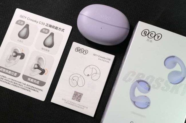 QCY C30采用反Z结构搭配C型桥设计,整体稳定性表现尚可。单只重量约5g,佩戴舒适度不错,但耳夹弹性相对一般,对耳型略微敏感,耳廓偏小或偏薄的用户可能需要调整佩戴位置以获得更好的贴合感。