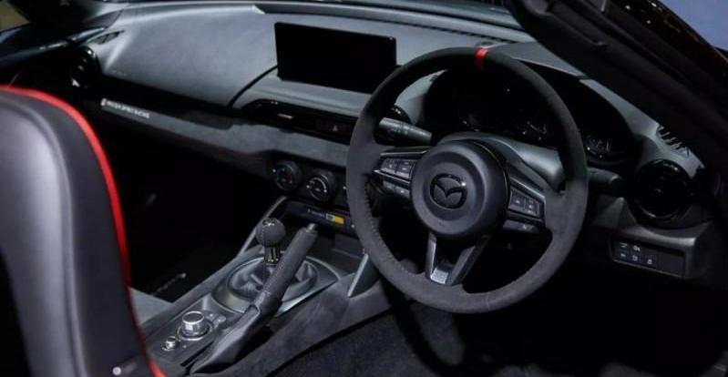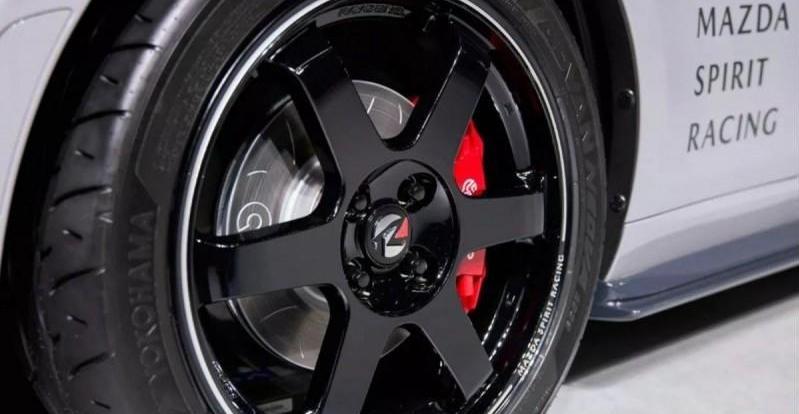 当然,除了性能上的提升,MX-5 Spirit Racing在外观和内饰方面也进行了升级。专属的碳纤维前下扰流和侧裙,让它看起来更加运动;六幅式黑色Rays TE37轮毂搭配普利司通Potenza轮胎,则进一步提升了其视觉冲击力。