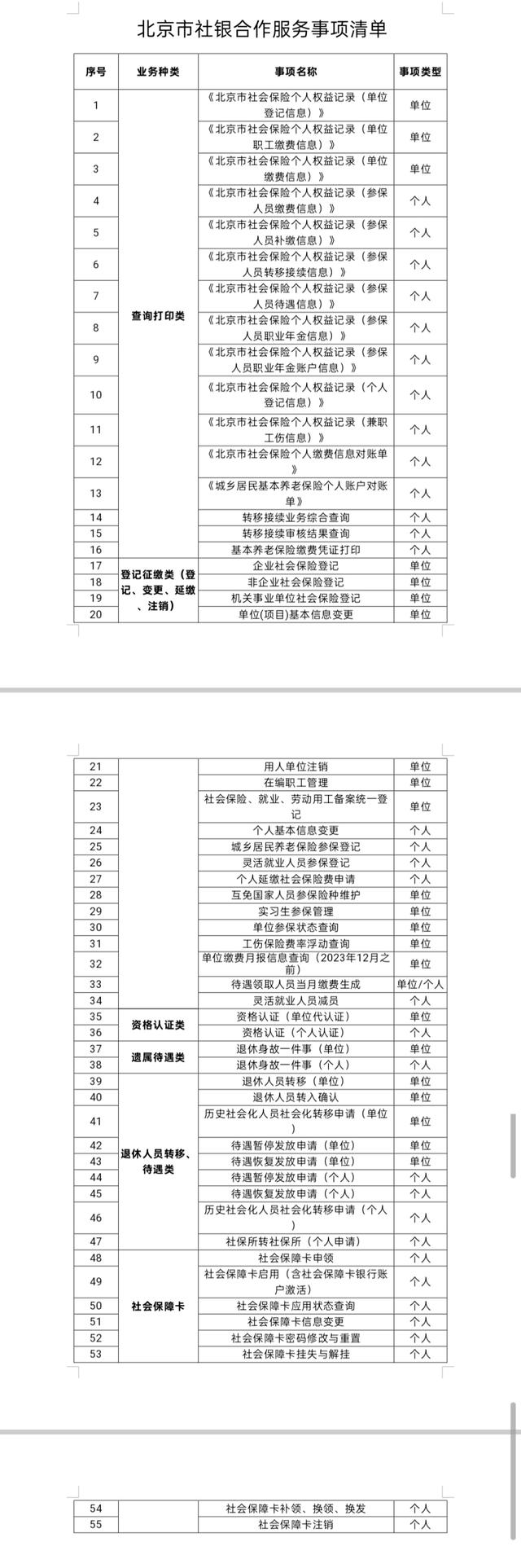 3月20日,按照“试点先行、逐步推广、成熟一批、推广一批”的原则,“北京市社银合作全面推广动员部署会”召开,在全市范围内推广社银合作,9家银行参与合作,在全市95个银行网点设立了“社保服务合作网点”,可办理55项社保业务,进一步满足企业群众“就近办”“多点可办”服务需求,让广大参保群众在家门口就能享受社保服务。