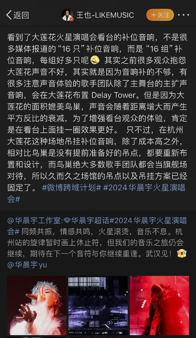 华晨宇又一次打破记录了!创下杭州“大莲花”演唱会单场上座率最高歌手,超80000人参与了这场视听盛宴,果然没人能逃出花花的世界。杭州大莲花是中国第二大的体育场,此前曾承办亚运会。