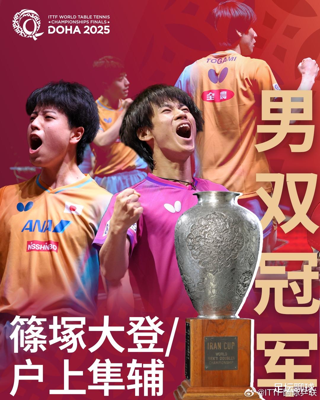 最终,户上隼辅/篠塚大登大比分3-2逆转击败林昀儒/高承睿,各局比分为6-11、11-5、7-11、11-6、11-6,这也是日本乒乓球队时隔64年再夺世乒赛男双冠军,上一次夺冠还是1961年。