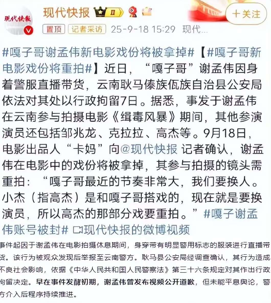 【环球时报】“嘎子谢孟伟”被行拘!警方通报