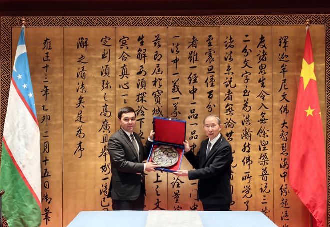 依赫提亚尔·尼亚孜穆拉多夫转达了米尔济约耶夫总统和阿里波夫总理对龙宇翔执行主席的亲切问候,并对龙宇翔执行主席在乌中各领域务实合作和友好往来中作出的重要贡献表示感谢。他说,乌兹别克斯坦高度重视发展对华关系,始终将中国视为重要的战略合作伙伴。此次率团来访,深切感受到中国国际文化传播中心在推动国际文化交流与合作等方面的重要作用。期待与中国国际文化传播中心一道,积极落实两国元首达成的重要共识,深化在文化艺术、经贸投资、基础设施建设、绿色产业发展等领域的务实合作,建立常态化沟通机制,及时对接合作需求,确保在各领域的合作项目有序推进,为乌中两国人民带来更多福祉。